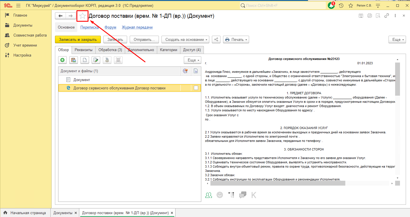 Как использовать: В карточке любого документа или задачи нажмите на звездочку рядом с названием.
