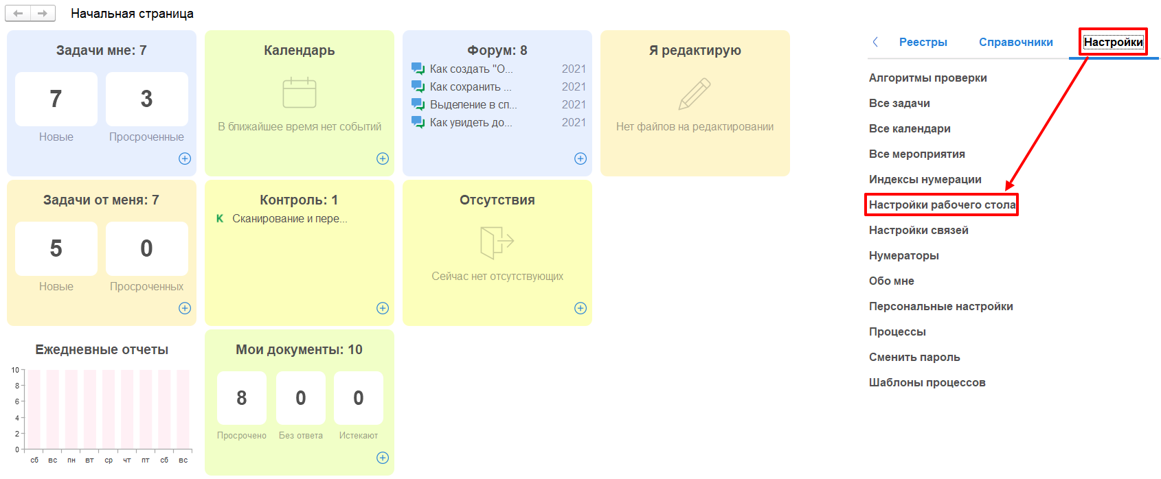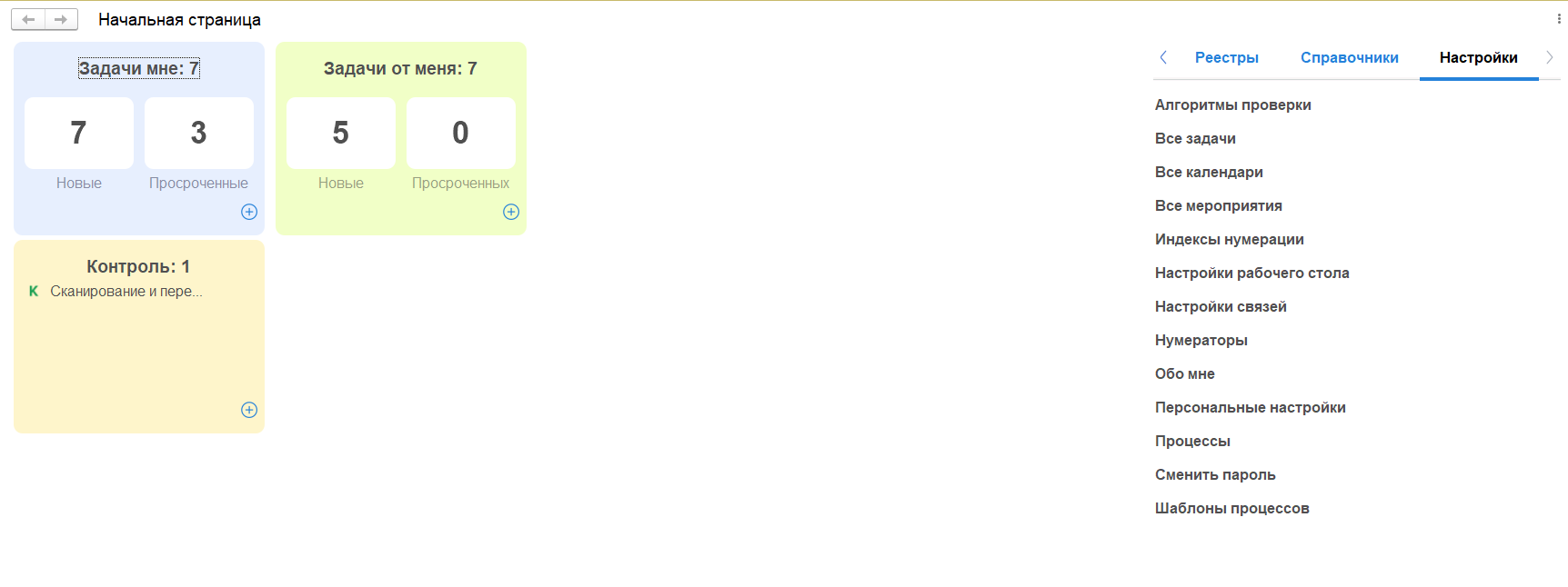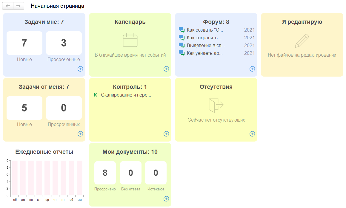 Оставьте только необходимые Вам блоки, которые требуют вашего действия, например: «Задачи мне», «Задачи от меня» и «Контроль», удалив другие блоки виджетов.