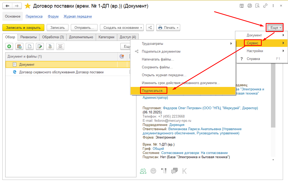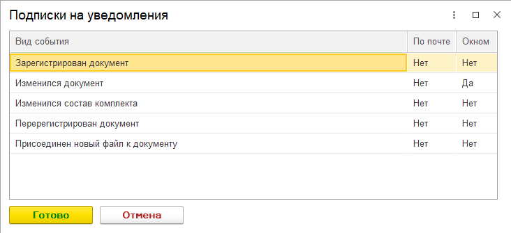 Как настроить: В карточке документа нажмите кнопку «Еще» - «Сервис» - «Подписаться…».