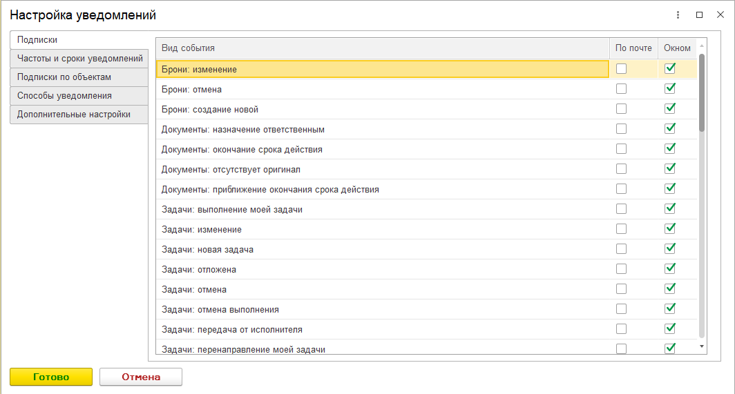 Чтобы 1С не заваливала вас письмами по каждому мелкому поводу, настройте их под свой ритм.