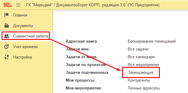 Как настроить: Совместная работа — Замещающие.