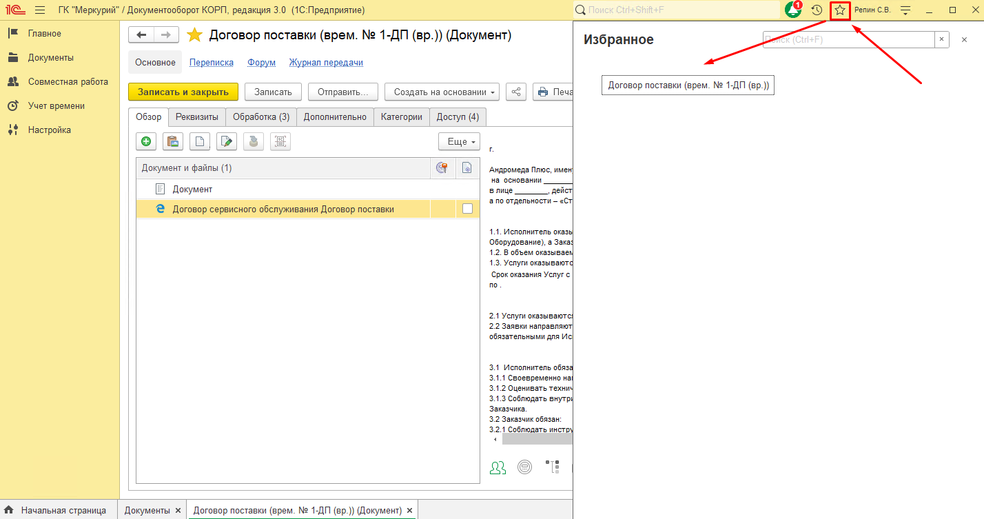 Совет: Поместить в «Избранное» можно не только документы, но и отдельные разделы, в которые вы чаще всего заходите, например «Все мероприятия». Это сэкономит десятки кликов в день.
